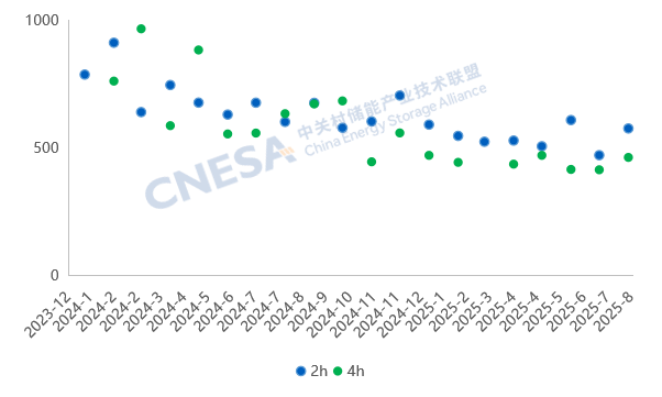 集采/框采方面,2h储能系统均价为454.8元/kWh,价格区间为416元/kWh-540元/kWh;4h储能系统中标均价为418.5元/kWh,价格区间为370元/kWh-495元/kWh。