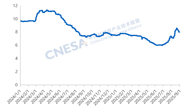 2025年8月,整体均价走势相对较为平稳,其中大储方面:
